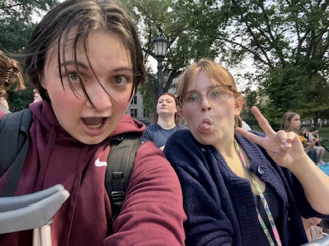 I’ve seen basketball before, I’ve played it in my time, and I’ve watched it on TV. But I’ve never been to a basketball game in person, and for Anna, this was her first college basketball game. We got there late, so the front student section was all taken, but we sat next to the band. That was more of a mistake, because we couldn’t hear anything whenever they were playing. It was like our eardrums were constantly being attacked.