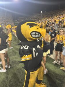 Imagine it’s a Saturday in Iowa City, it’s 95 degrees out, the sun is shining, it’s game day, and you’re tailgating with your friends from your floor. The game starts in 7.5 hours, and you’re having fun, but because it’s so hot, you get heat exhaustion. But, you power through all of it and go to the game, and as the first quarter is going on, the sun starts to set, so when the first quarter is done and Iowa does the wave, the sun starts to set while everyone is waving to the kids in the children’s hospital. By the end of the game, the Hawkeyes win 47-7, and our head coach Kirk Ferentz won his 206th game, which is the highest amount of wins in the Big 10!